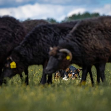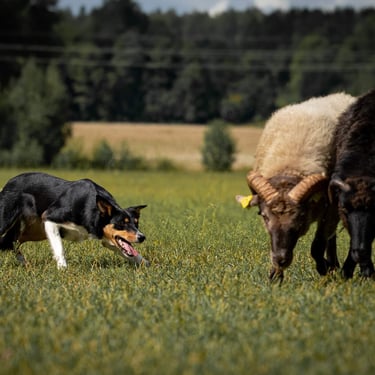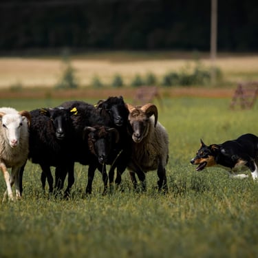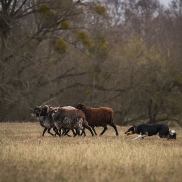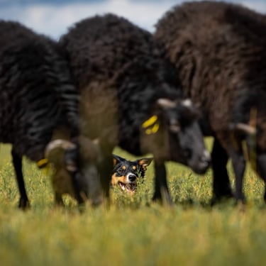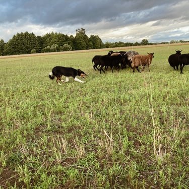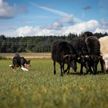 Dirbdama su avimis, Mej yra preciziška ir atkakli. Turi gražų ganymo stilių, tvirtą žvilgsnį, kurį sunkiai atremia net ir labiausiai užsispyrę gyvuliai. Tuo pačiu yra jautri ir atidi, visada stengiasi atlikti darbą idealiai ir pateisinti vedlio lūkesčius.