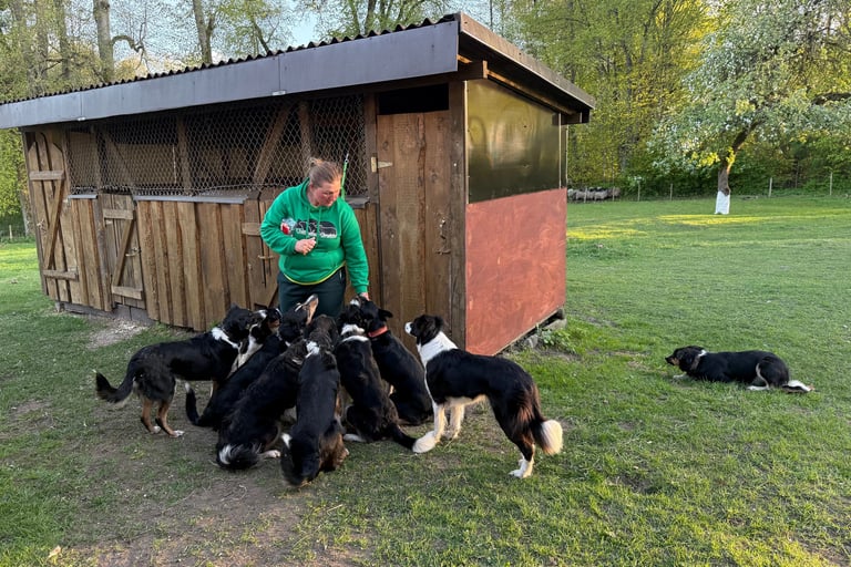 I personally raise seven Border Collies, and although I have experience managing multiple dogs, I accept only two additional guests at a time to provide individual attention and quality time in nature.