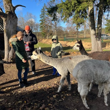Introduction to farm animals: Border Collie dogs – their origin and purpose, various breeds of sheep, alpacas, and ponies – time spent with animals.