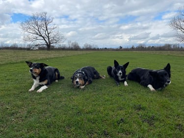 Varžybose dalyvavo daugybė moterų komandų. Aš dalyvavau su savo borderkoliais Blake ir Mej. Trasa buvo su iššūkiais šunims. Vandens apsemta trasa, nelygus paviršius ir dideli grioviai. Niekas negalėtų paneigti, kad šios varžybos ne tik išplėtė jų patirtį, bet ir sustiprino jų jau ir taip tvirtą ryšį.