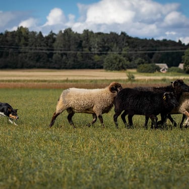 Susipažinimas su ūkio gyventojais: borderkolių veislės šunys, įvairių veislių avys, alpakos, poniai - laikas su gyvūnais.